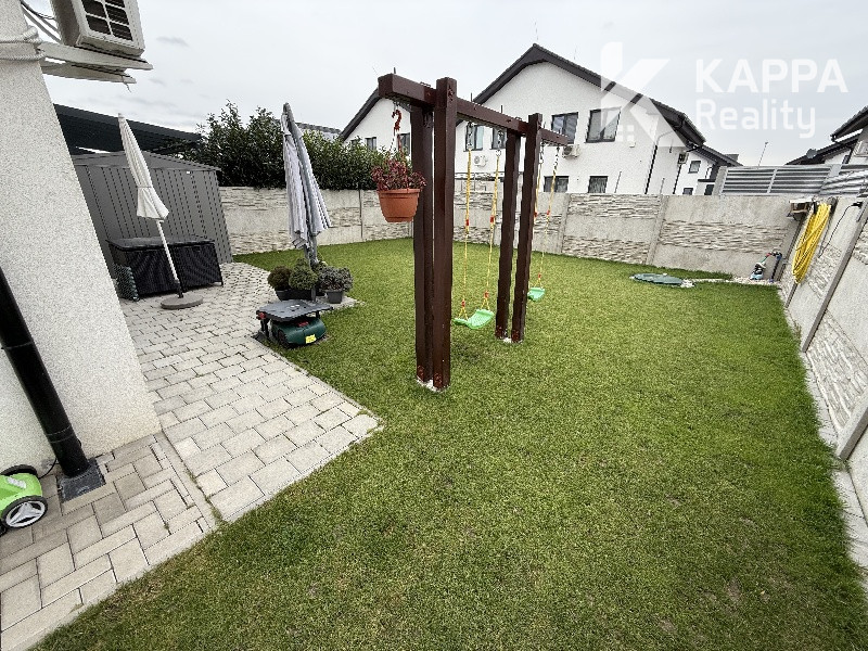 KAPPA Reality Vám ponúka na predaj novostavbu 4 izbového zariadeného mezonetu s peknou záhradou v obci Hviezdoslavov, v atraktívnej novovybudovanej lokalite Slnečné Záhrady. Nehnuteľnosť sa nachádza v tichej lokalite na Rumančekovej ulici v pokojnej a už zabývanej štvrti s kompletnou občianskou vybavenosťou (lekáreň, supermarket Terno a Billa, Pepco) v pešej dostupnosti.